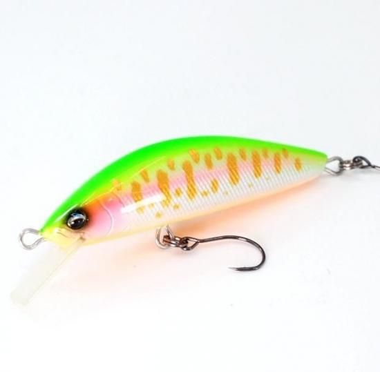 軽いバルサコアを軽量樹脂で被覆する構造によりバルサミノーと同等の性能と高い耐水、耐久性を獲得したレイチューンオリジナル製法。BLADEシリーズはレイチューンフルハンドメイドミノーから型取りコピーしたレプリカモデル。 レーシングマシーンと同じ「徹底的なマスの集中化」の思想の元、超軽量のバルサ材+軽量ウレタンで構成されるボディーに、動きの起点となるタングステンウエイトを搭載したフローティングモデルがBLADE F50です。急激なストップ&ゴーを得意としながらも、スローフローティングにセットされた絶妙な浮力が動きに余韻を生み、小さく操作すればキビキビと、大きくジャークすれば魚を惑わす平打ちダートと、アングラーの感性に完璧に同調する操作性を獲得しています。 ビギナーには上達をサポートする良き師となり、エキスパートにはテクニックを更に覚醒させる究極のウェポンとなるでしょう。