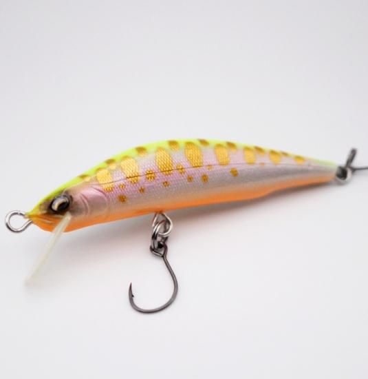 バルサコアを軽量樹脂で被膜する構造により、バルサミノーの運動性能と3Dモデリングによる精密な外観と高い強度、耐水性を獲得するレイチューンオリジナル製法を採用。 ミノーの肝はジャーキングだ!追尾しても口を使わない魚をヒットに持ち込むには… 誰もが経験するもどかしさをDP50RRのシャープな瞬発力と、平打ちk後ピタリと止まるストッピングパワーがアングラーのテクニックにどこまでも応えるスーパーミノー。 高性能とは何か?DP50RR mK3はレイチューンの理想に最も近づいた渓流ミノーの決定版である。