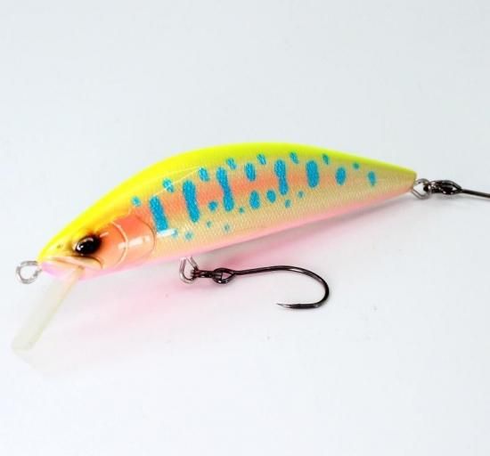バルサミノーの高性能に、精密な3Dモデリングデザインを施す新製法の最新鋭トラウトミノー。 DP62RSには、ユーザー自らのセッティングの幅を持たせる目的で、あえて大きめのファイバーリップを装着している。 シングルフックで使いたいユーザーは少しリップを削るとウォブリング幅が押さえられて扱いやすくなるだろう。 ST-36BC#14のトレブルフックを前後に装着すれば、泳ぎはタイトウォブンロールとなり、高速限界が飛躍的に高まる。 ここ一番のポイントで確実に大物を仕留める為に事前にセッティングを済ませておけば、一撃でヒットさせることができるだろう。