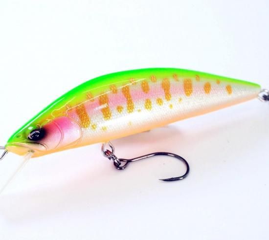 バルサミノーの高性能に、精密な3Dモデリングデザインを施す新製法の最新鋭トラウトミノー。 DP62RSには、ユーザー自らのセッティングの幅を持たせる目的で、あえて大きめのファイバーリップを装着している。 シングルフックで使いたいユーザーは少しリップを削るとウォブリング幅が押さえられて扱いやすくなるだろう。 ST-36BC#14のトレブルフックを前後に装着すれば、泳ぎはタイトウォブンロールとなり、高速限界が飛躍的に高まる。 ここ一番のポイントで確実に大物を仕留める為に事前にセッティングを済ませておけば、一撃でヒットさせることができるだろう。