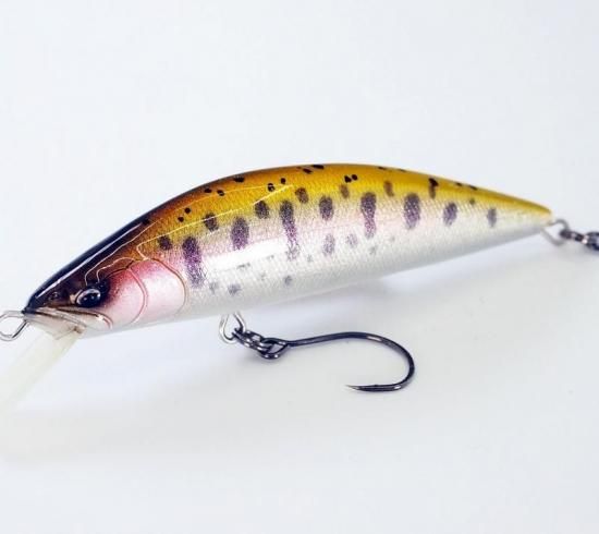 バルサミノーの高性能に、精密な3Dモデリングデザインを施す新製法の最新鋭トラウトミノー。 DP62RSには、ユーザー自らのセッティングの幅を持たせる目的で、あえて大きめのファイバーリップを装着している。 シングルフックで使いたいユーザーは少しリップを削るとウォブリング幅が押さえられて扱いやすくなるだろう。 ST-36BC#14のトレブルフックを前後に装着すれば、泳ぎはタイトウォブンロールとなり、高速限界が飛躍的に高まる。 ここ一番のポイントで確実に大物を仕留める為に事前にセッティングを済ませておけば、一撃でヒットさせることができるだろう。