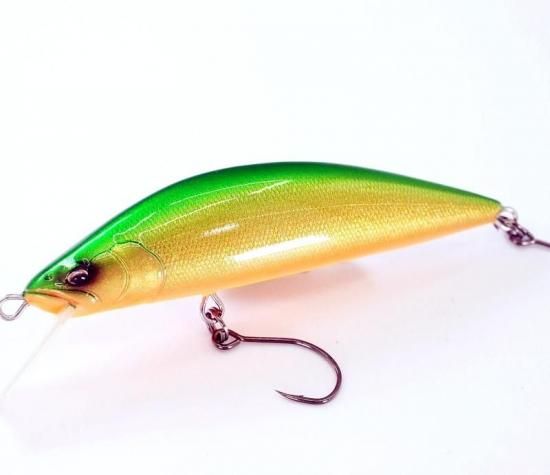 バルサミノーの高性能に、精密な3Dモデリングデザインを施す新製法の最新鋭トラウトミノー。 DP62RSには、ユーザー自らのセッティングの幅を持たせる目的で、あえて大きめのファイバーリップを装着している。 シングルフックで使いたいユーザーは少しリップを削るとウォブリング幅が押さえられて扱いやすくなるだろう。 ST-36BC#14のトレブルフックを前後に装着すれば、泳ぎはタイトウォブンロールとなり、高速限界が飛躍的に高まる。 ここ一番のポイントで確実に大物を仕留める為に事前にセッティングを済ませておけば、一撃でヒットさせることができるだろう。