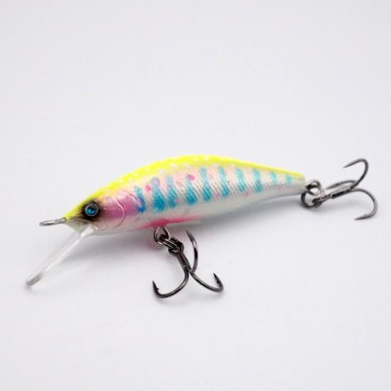 ●GENE454横アイ 2.3g スローシンキング 釣り人のフィッシングスタイルはミノーの性能によって規定される。 いつしかミノーが応えてくれる範囲の操作しかしなくなり それが唯一の正解と思い込み、他の釣り方を想像すら出来なくなる。 これがアマチュアの陥りやすい罠だ。 常に強めのアクションを与えるスタイルのアングラーにとって トレンドのヘビーシンキングミノーの重く鈍重な性能は 時にフラストレーションの原因となっているだろう。 激流の流心直下に潜む強い個体を 強いトゥイッチのきらめく明滅で誘い出す事の出来るミノーが いったい幾つあると言うのか。 それを実現しているのは、恐らくレイチューン製品と ごく一部のマニアックなバルサミノーブランドだけだろう。 ましてや45mmでそれをやるとなると… 釣りのイマジネーションを拡張するミノー その答えが「レイチューン」であり「GENE454」なのである。